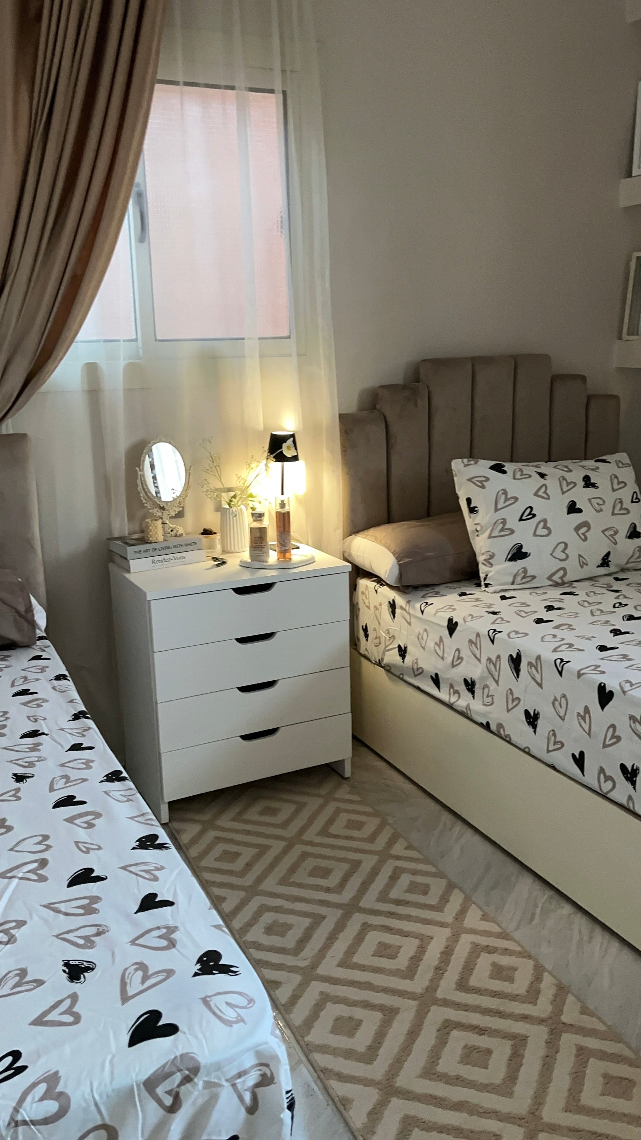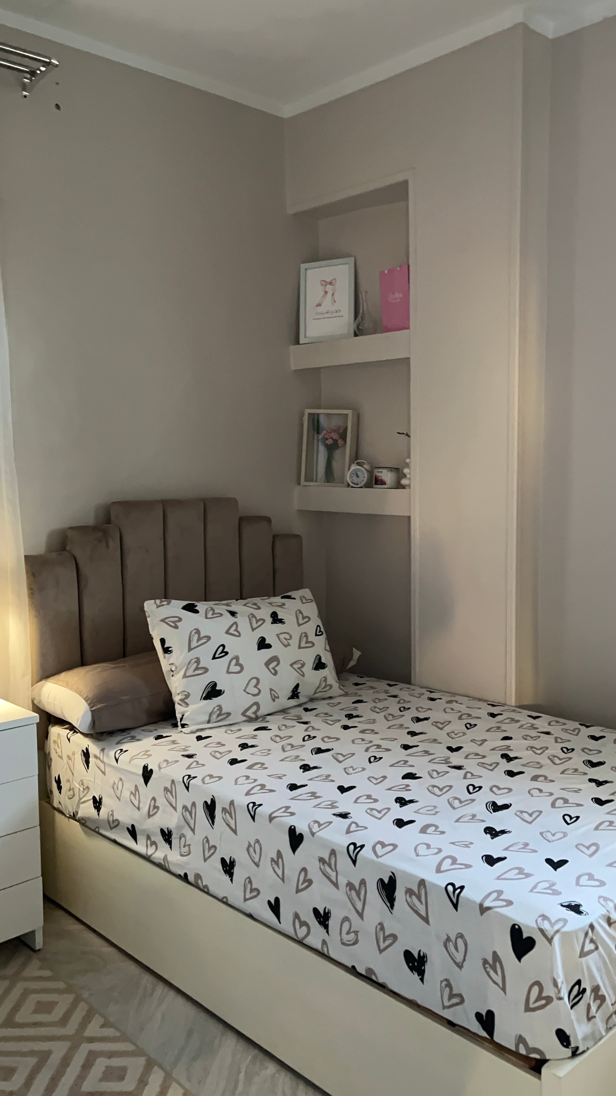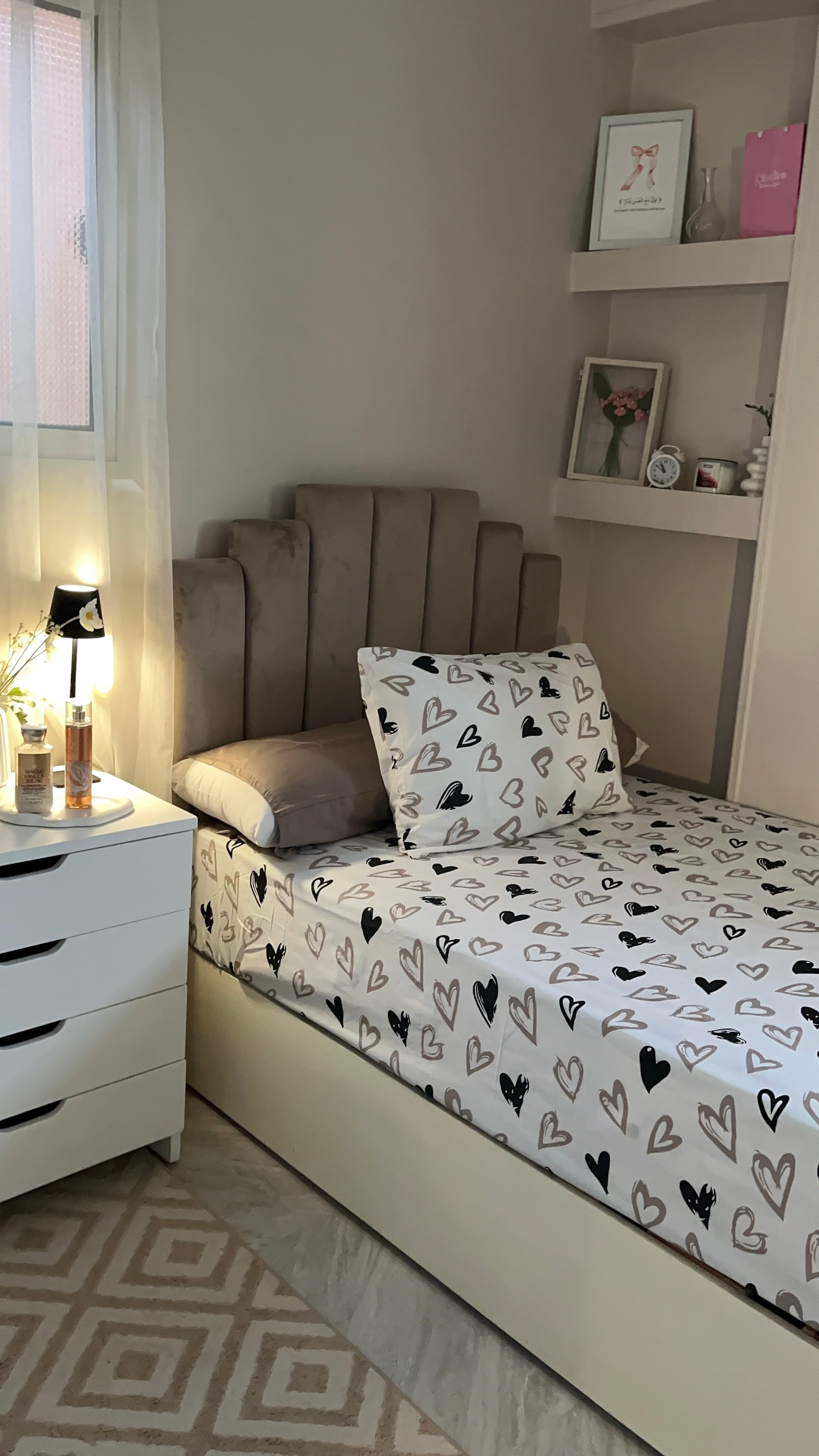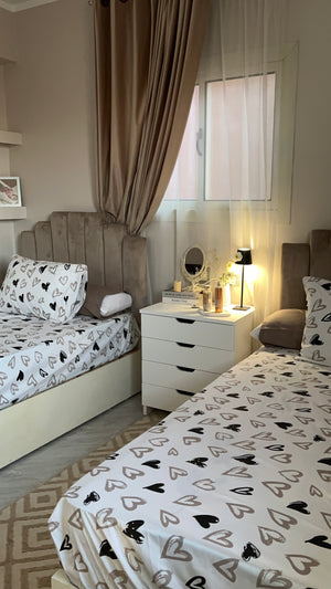 Beige & black hearts sheet