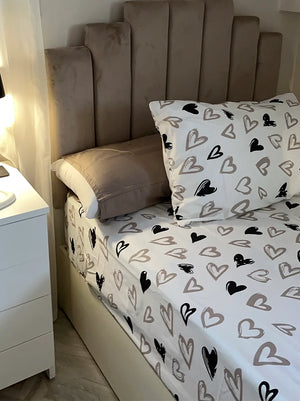Beige & black hearts sheet
